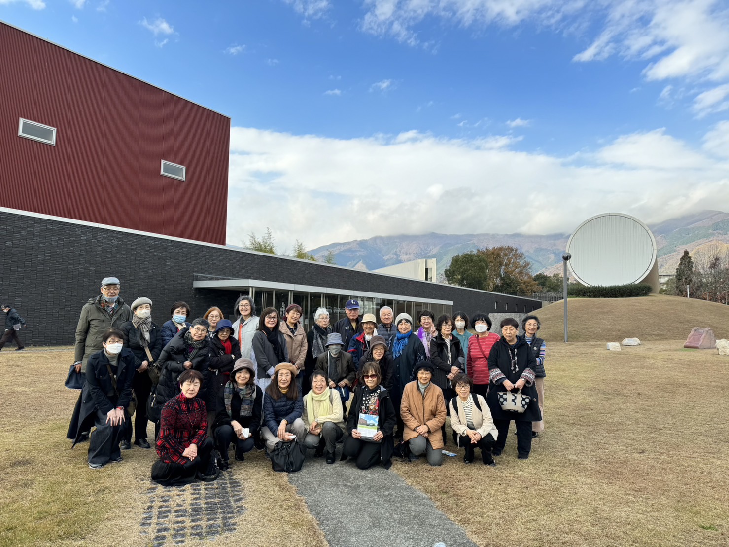 奈義町現代美術館前で2